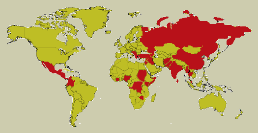 Führen Sie Ihren Maus-Cursor über die rot-markierten Länder um weitere Informationen zu erhalten.